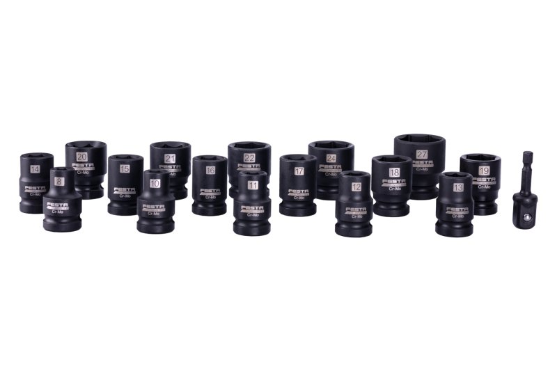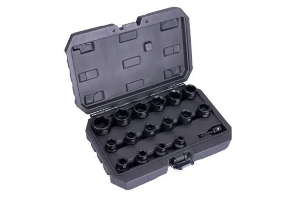 obsah sady 8*10*11*12*13*14*15*16*17*18*19*20*21*22*24*27 + adaptér zo štrhranu 1/4" na štvorhran 1/2" - pre použitie v uťahovačoch so šesťhranom 1/4"