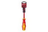 Skrutkovač FESTA má certifikáciu elektro VDE 1000 V, EN IEC 60900: 2018, kovový driek je vyrobený z veľmi kvalitnej chromvanadiovej ocele, kalený hrot je magnetický, kombinácia polypropylénu a gumy na ergonomicky tvarované rukoväte zaručuje výborné antisklzové odolnosť.
